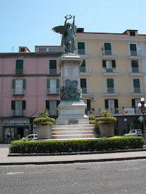 Realizzato dallo scultore Giuseppe Renda: tutto era pronto per l’inaugurazione, il 28 ottobre 1928 quando il vescovo dell’epoca rifiutò di parteciparvi poiché sul monumento apparivano delle immagini che ritraevano uomini nudi. Il monumento rimase coperto per circa tre anni poiché sia il vescovo, sia lo scultore (che non voleva modificare la sua opera) si rifiutarono di trovare un punto di incontro. La situazione cambiò soltanto quando il presidente dell’azione cattolica convinse Giuseppe Renda a modificare le sculture: il monumento venne finalmente inaugurato nel 1931, alla presenza di tutte le autorità. L’opera rappresenta la Vittoria Alata. Ogni 25 aprile viene svolta una solenne cerimonia ai piedi della statua per ricordare la liberazione dell’Italia.